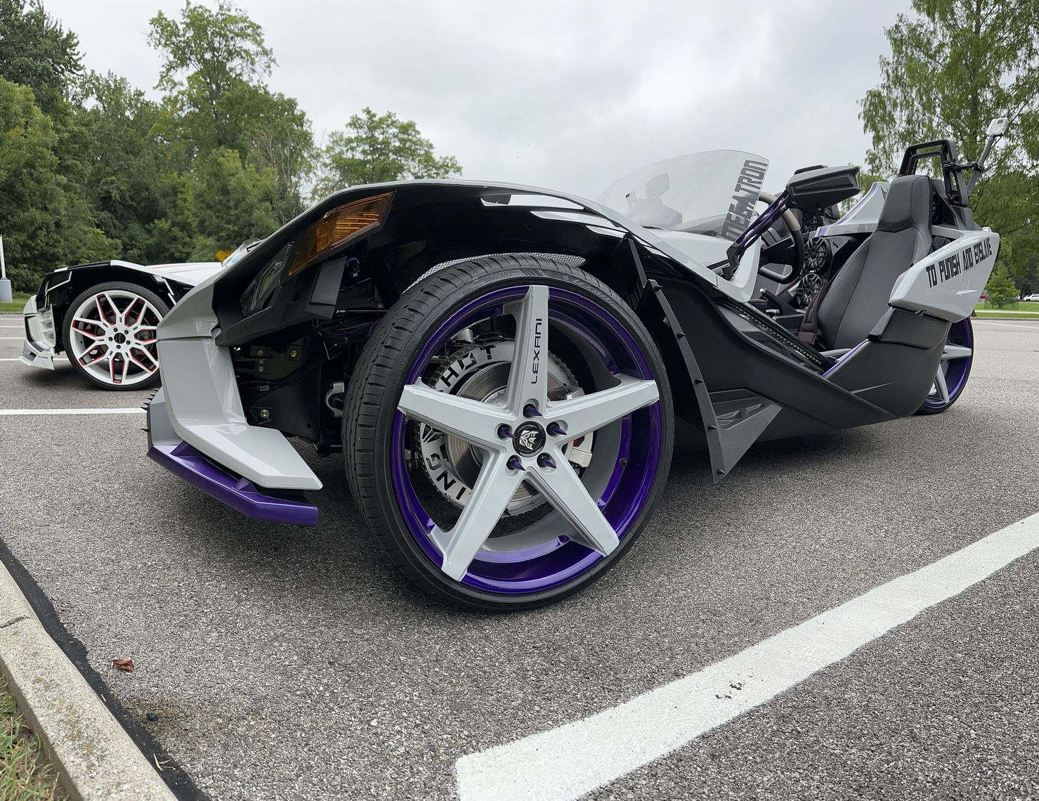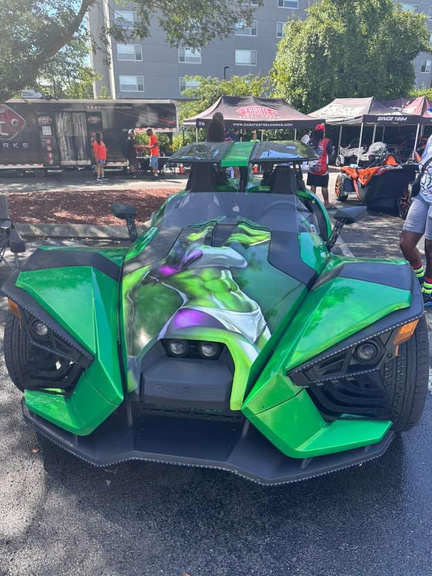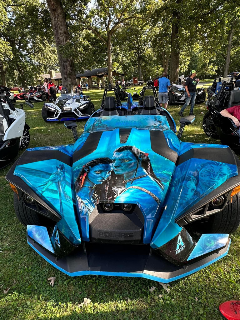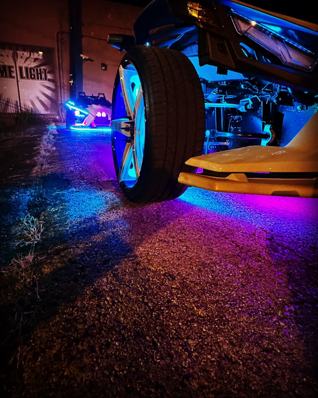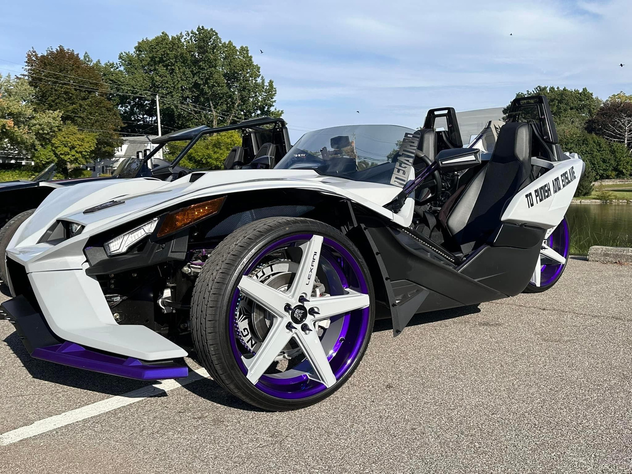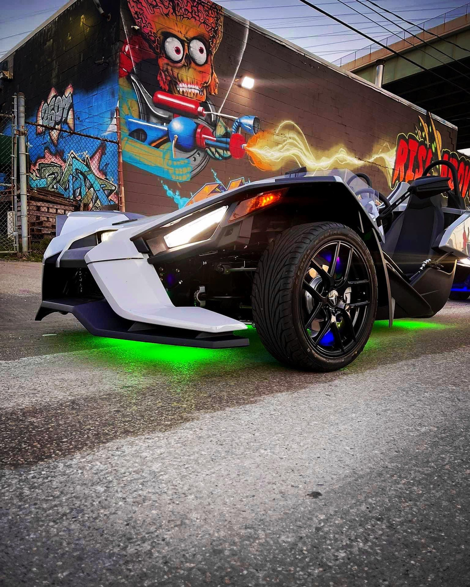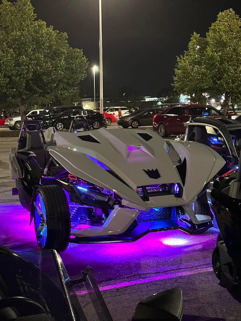 Over the past year, my husband has transformed our Polaris Slingshot into an incredible masterpiece. We embarked on an exciting journey of customization, starting with upgrading our audio system with DS18 speakers and a larger touchscreen stereo for an immersive sound experience. Our hood, air intake, tires, and rims were all upgraded to enhance both performance and style. To add a touch of excitement, we installed vibrant RGB LED’s that illuminate our Slingshot for nighttime adventures. From the moment we purchased our Slingshot in the desired ghost gray color, my husband embraced his inner Transformers fan and opted for a striking